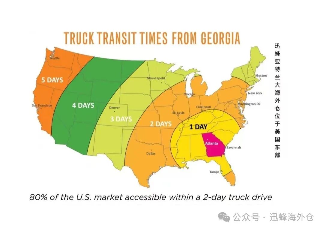 迅蜂的美东海外仓坐落于亚特兰大,佐治亚州。